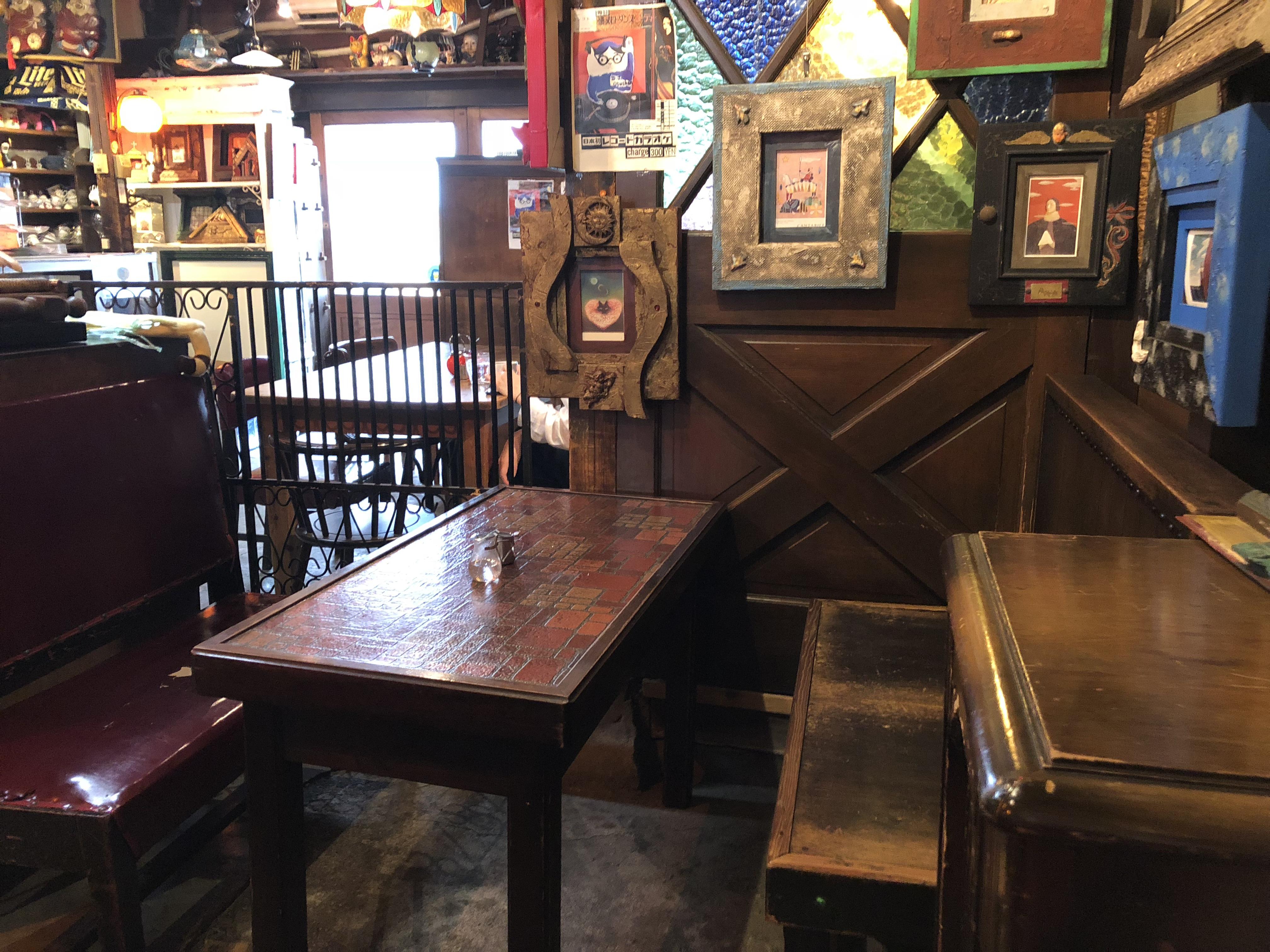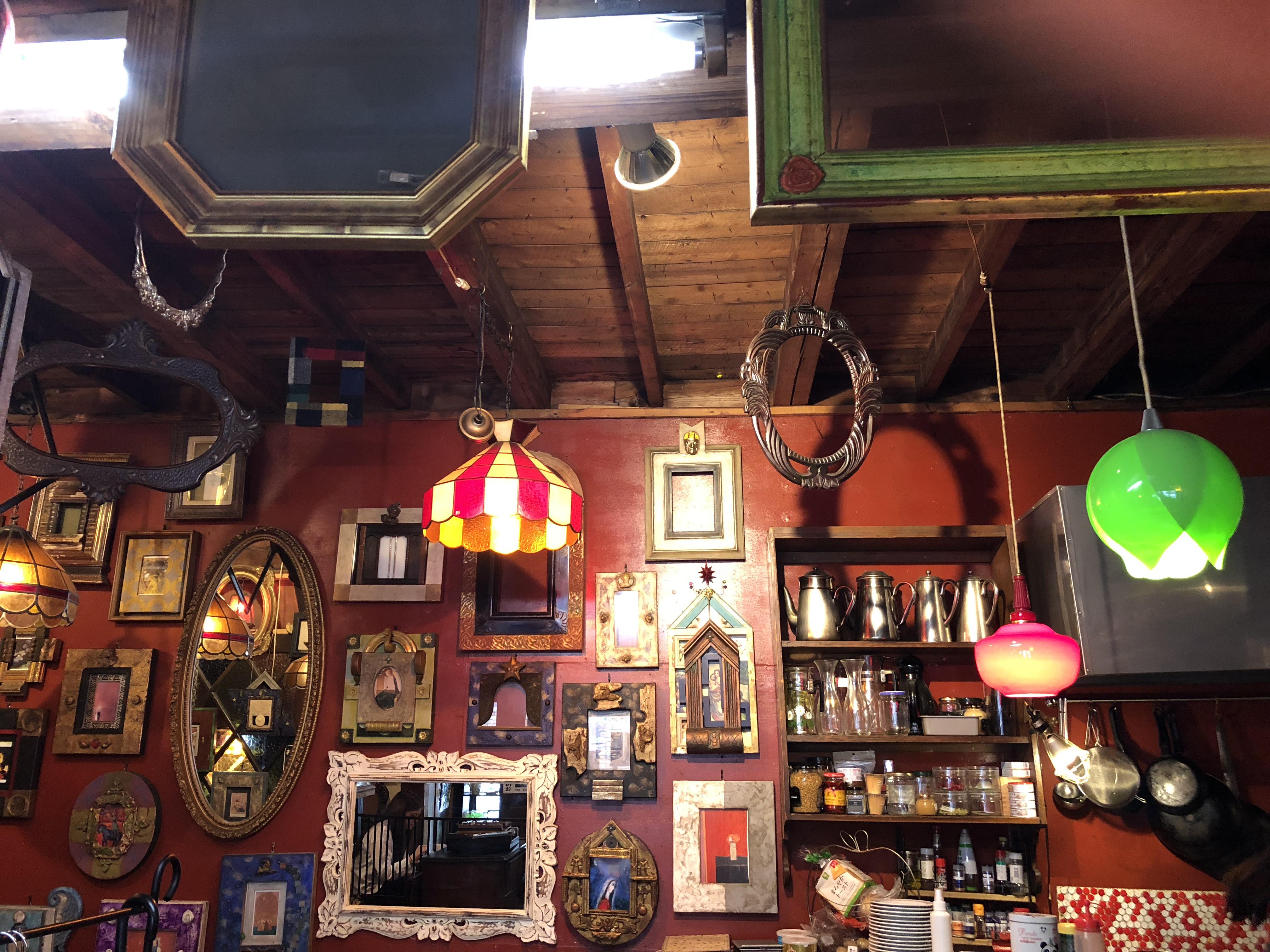 壁一面にレトロな額縁が飾ってあり
