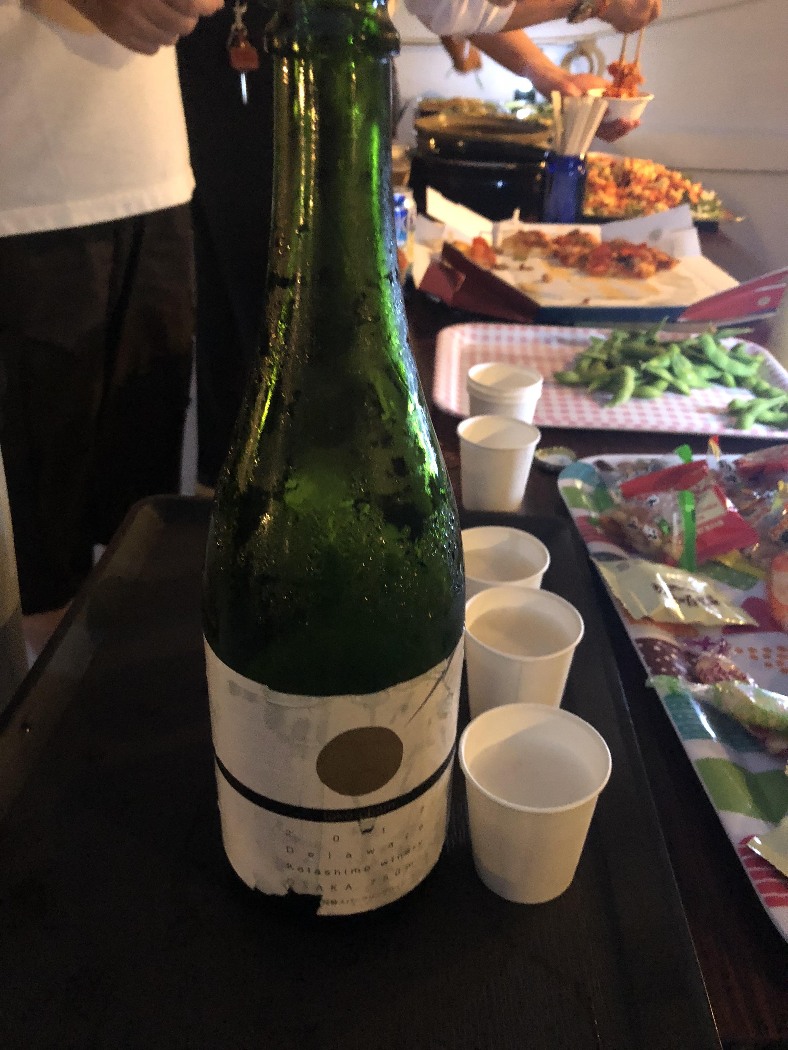 熱々のたこ焼きとシャンパンは最高!