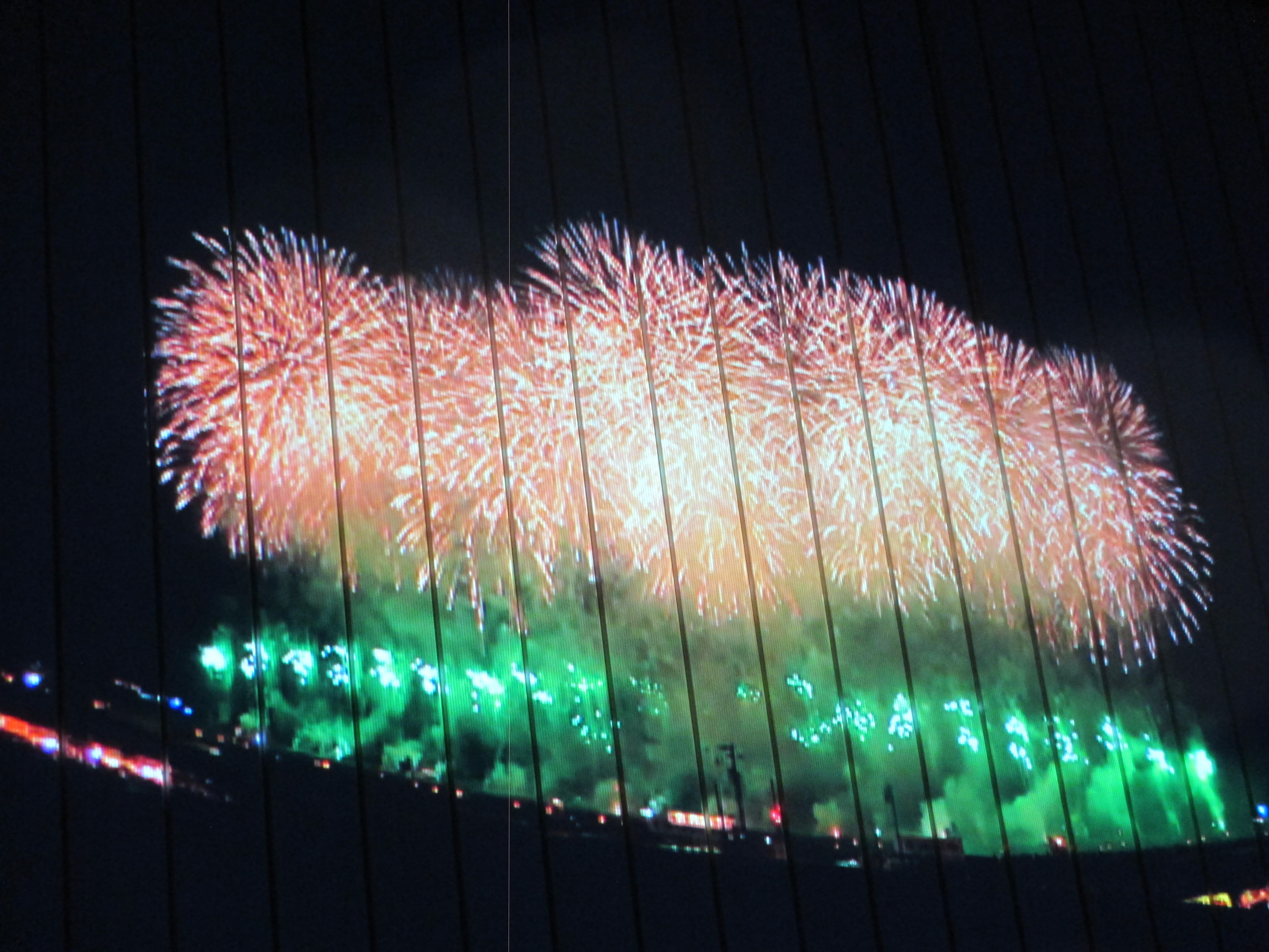 屋上の看板にプロジェクターで花火の動画を放映。![]()